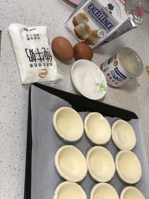 1. 蛋撻皮提前拿出來解凍備用。(也可以用自制的蛋撻皮)我說的解凍意思是室溫放到可以把蛋撻皮輕而易舉