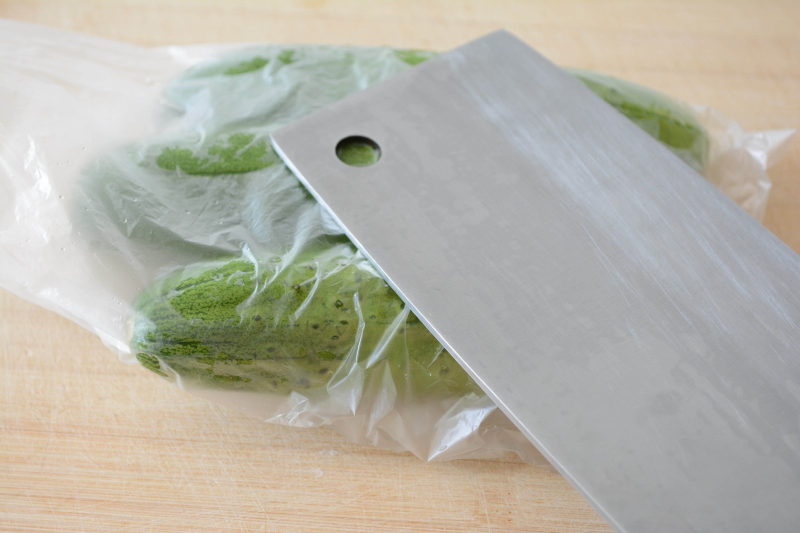 10. 想拍黃瓜的時(shí)候?yàn)R出黃花汁液,套上袋子在處理即可避免~