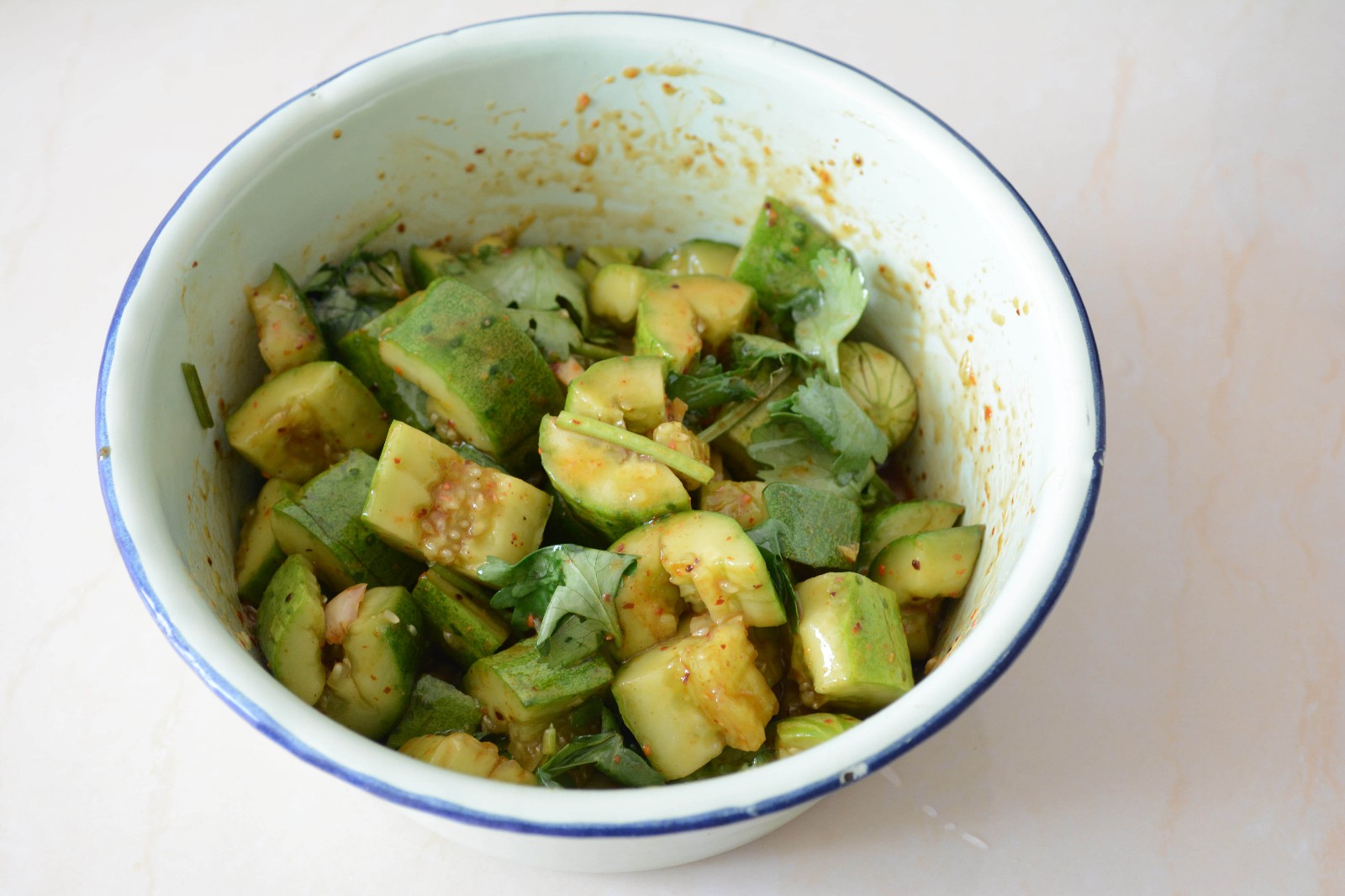 11. 拍散的黃瓜切成適中大小的黃瓜塊~