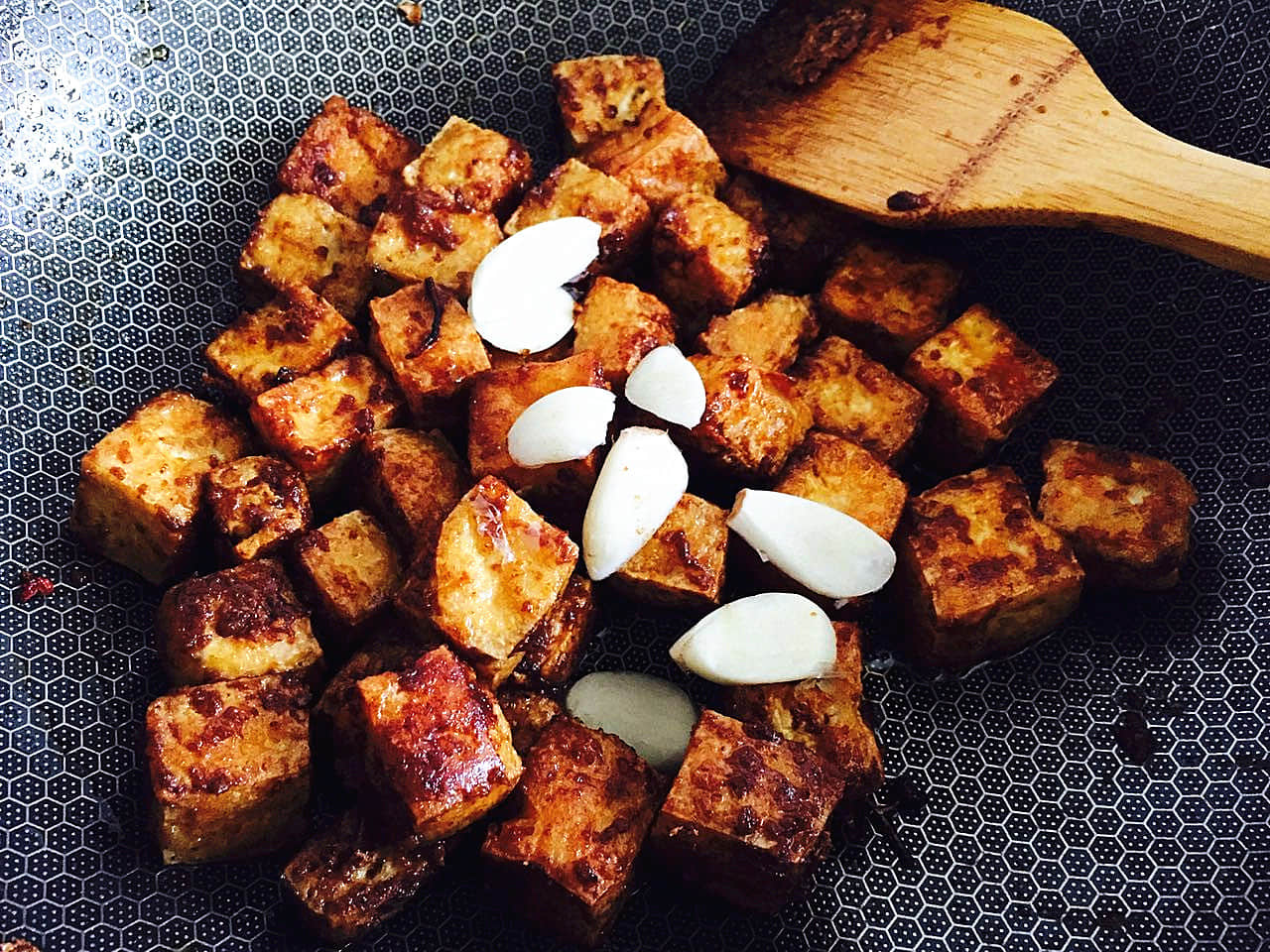 材料:皇牌沙茶王 、豆腐、香蔥、花椒 、醬油、清水、蒜 做法:1. 豆腐切小塊,香蔥切碎2. 鍋里放油,八成熱時(shí)倒入豆腐炸至金黃,乘出備用。3. 鍋內(nèi)放少許底油,花椒炸出香味,倒入兩勺皇牌茶沙王炒香4. 再倒入醬油和少許水與炒香的皇牌茶沙王煮勻。5. 倒入豆腐翻炒均勻后另入蒜片和香蔥再炒勻即可出鍋。...