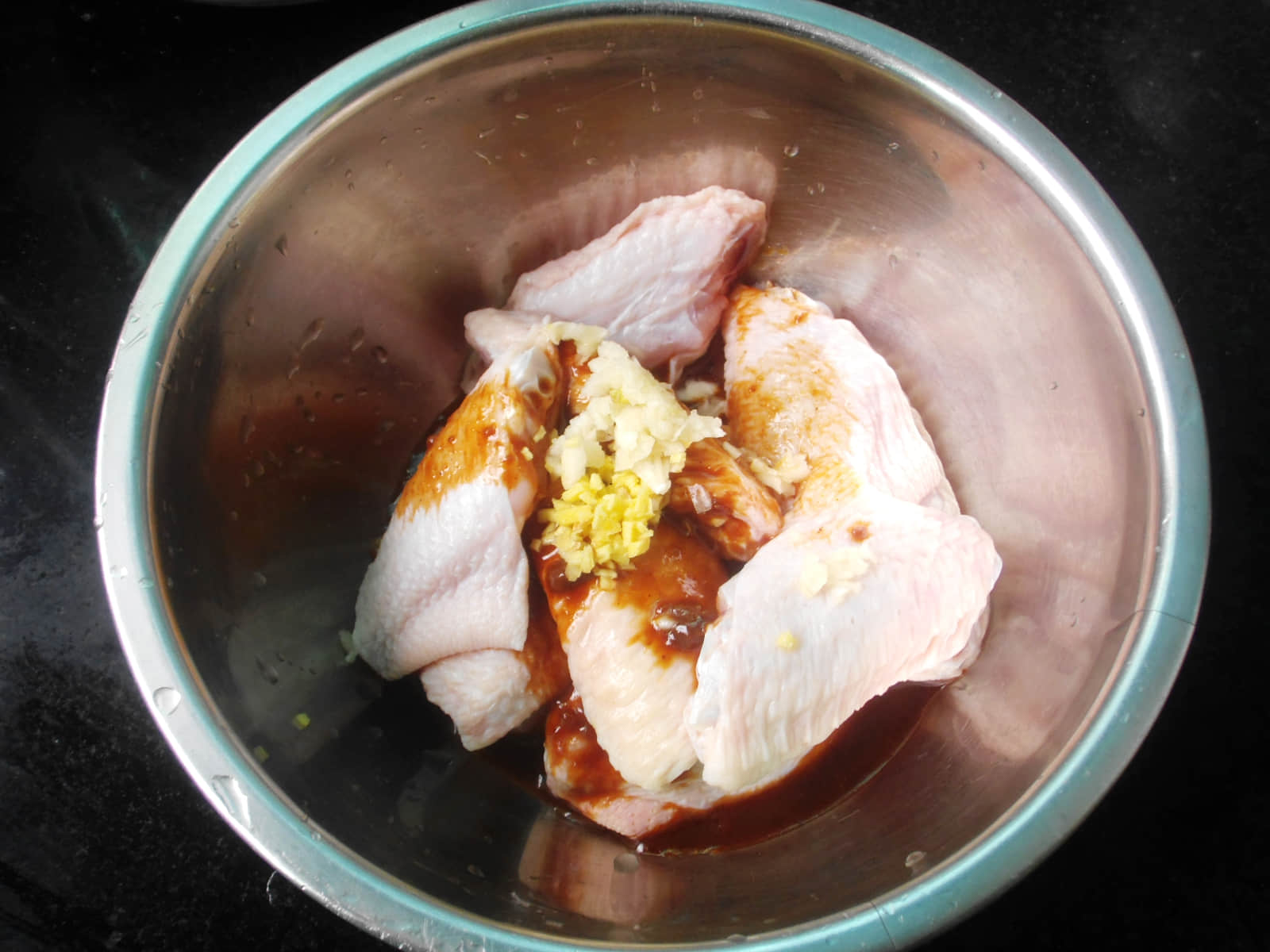 材料: 雞翅中10只,沙茶醬1湯匙,醬油1湯匙,姜2小片,蒜1瓣,白糖少量,鹽 1. 備好材料2. 沙茶醬、醬油、鹽和白糖都放小碗里調(diào)勻待用3. 雞翅清洗干凈,用牙簽扎一扎便于入味4. 將調(diào)味汁倒入雞翅中,加入切末的蒜末姜末5. 把雞翅和料汁抓勻,加蓋保鮮膜冷藏腌制幾個(gè)小時(shí)6. 腌制好的雞翅擺放在空氣炸鍋的烤網(wǎng)上,設(shè)置180度20分鐘7. 烤了15分鐘后,把腌制的料汁刷一遍8.