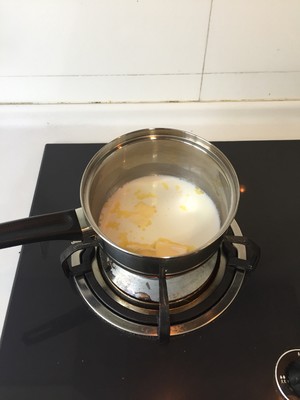 黃油、鹽、糖、牛奶放到鍋中開中小火加熱不停輕輕攪拌至微沸騰。酥皮泡芙的做法