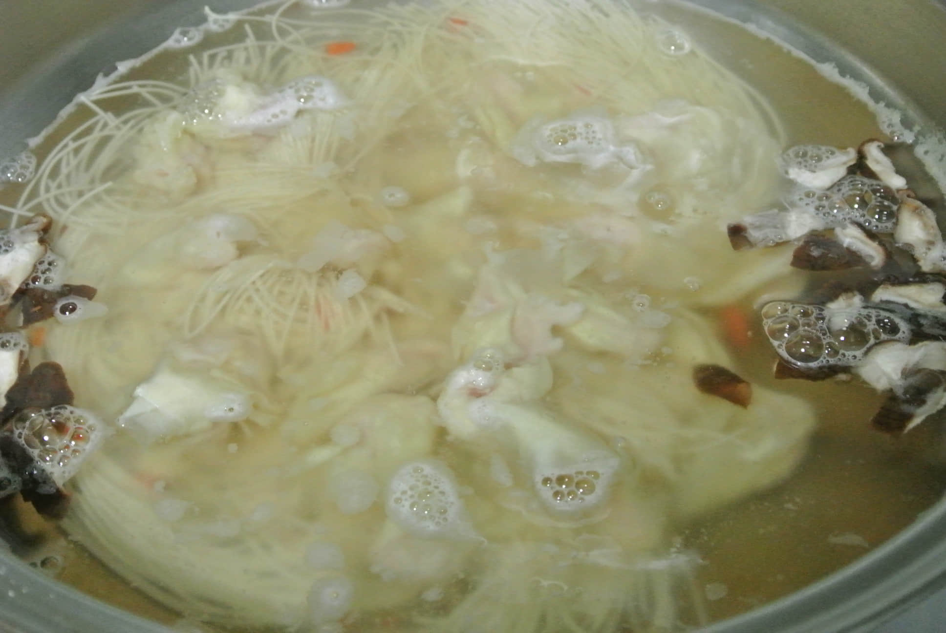 主料云吞6只 面條60克雞蛋1個(gè) 香菇2只輔料鹽2克 蝦皮3克紫菜3克 胡蘿卜15克香菜、香蔥適量 皇牌沙茶王10克做法步驟1. 食材備齊,香菇和胡蘿卜切片,蔥和香菜切末。2. 鍋中放適量水,加入香菇和胡蘿卜大火煮開。3. 加入一小勺沙茶醬,放入蝦皮。(沒有沙茶醬就放少許味極鮮)4. 下面條煮10秒。5. 下餛飩。6. 加入切好的香菜、香蔥和紫菜,放少許胡椒粉和鹽調(diào)味,出鍋前點(diǎn)上幾滴香油。...