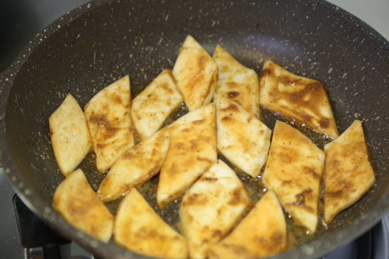 把杏鮑菇和茄子素與素扯在一起就像我之前做過的番茄炒茄子,乍聽起來有點風馬牛不相及,但事實證明,無肉勝有肉。 記得去年侄女滿月擺家宴的時候,爸媽竟然把杏鮑菇和豬肚炒在一起,眾所周知我媽做的豬肚又厚又脆無人能敵,但這兩樣東西在一起魚目混珠,好吃的口感也出奇地難分伯仲。 菜式呀,看來就是要大膽搭配,才會有意想不到的驚喜呢。 這次的思路是杏鮑菇我先放沙茶醬裹滿香煎,茄子過油容易軟又能防止變色以保持賣