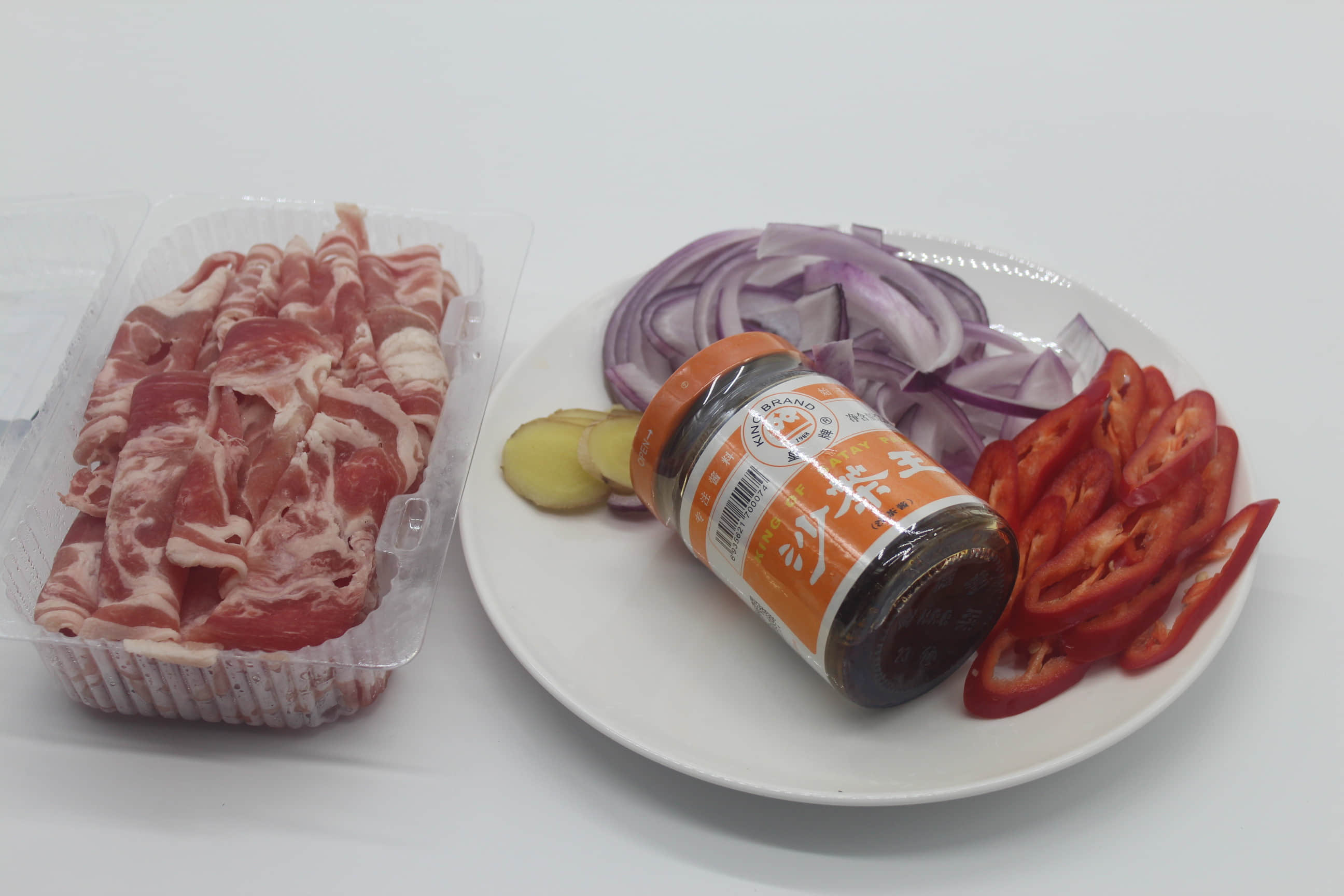 主料 羊肉片250g 洋蔥半只 紅椒一個(gè) 輔料 菜油1勺 姜5片 蔥適量 鹽2g 沙茶醬一大勺 小炒羊肉片的做法步驟1. 材料備齊。2