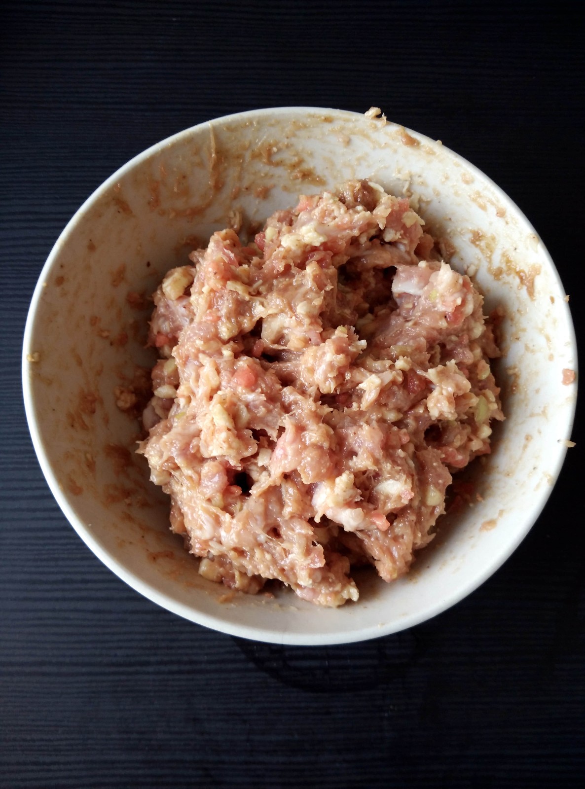 4、將攪好的肉餡倒出來,如果你覺得肉餡不夠細(xì),可再進(jìn)行一次“絞肉”程序;