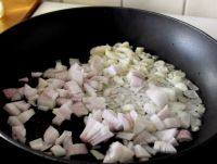 8.起一炒鍋,鍋熱倒油,油熱先下洋蔥和大蒜。