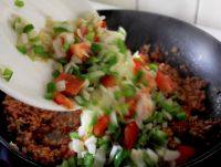 1.炒配菜時(shí)不要炒太熟,最后還要與肉泥拌炒。