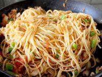 3.面煮9分熟就可以了,因最后還要與菜肉拌在一起,還會(huì)繼續(xù)加熱并吸收汁水