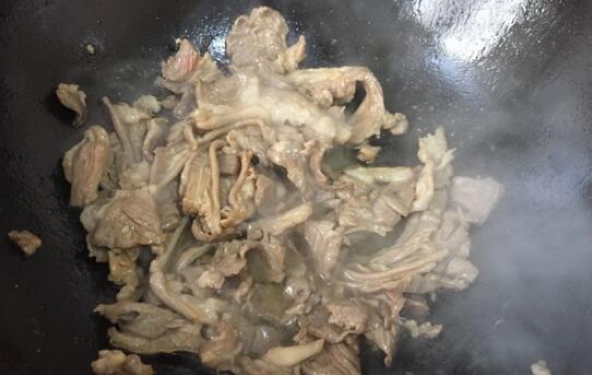6.滑炒羊肉卷,至變色,約兩分鐘內(nèi)就可以了,不可以炒太久,盛出