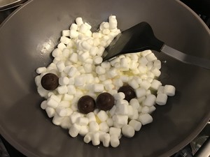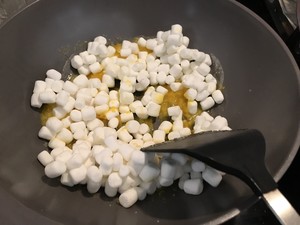 27. 放入棉花糖煮至融化成粘稠狀態(tài),記得這一步一定要用小火慢煮,以免煮過頭了影響做出來的口感