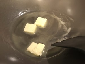 2. 然后把黃油放入不粘鍋里,中小火煮至融化