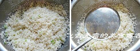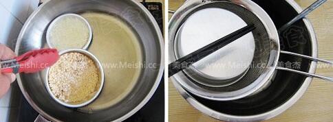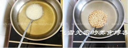 6.鍋中油熱后。取一顆米粒扔在油中,米粒能迅速地飄在油上即可