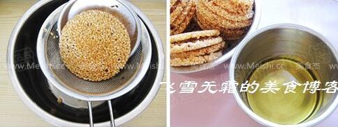 4.然后將模具放入油鍋里。如果油量比較少,可以用勺子將熱油倒入模具中。會自動幫你炸好拉