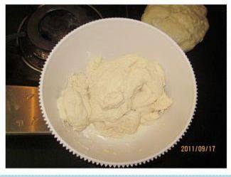 1.面粉、蜜糖、奶粉、鹽、酵母、雞蛋和水攪勻至可以拉出小片薄膜的光滑狀。
