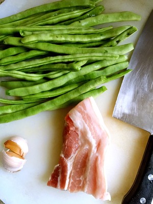 配飯吃的好菜用料 四季豆 350g豬肉 150g蒜 2瓣鹽 適量醬油 適量油 適量四季豆炒肉的做法步驟圖 1. 把所需要的食材洗干凈2. 四季豆切絲備用3. 豬肉切條、蒜拍碎4. 把鍋燒紅,倒油加熱后放蒜、肉一起快速翻炒,邊炒邊放鹽、醬油,倒進(jìn)豆角絲,繼續(xù)翻炒,再放點鹽,喜歡重口味可以加辣椒,炒到快干的時候加點水,再翻炒片刻即可裝盤小貼士四季豆不熟是有毒的,中途炒干