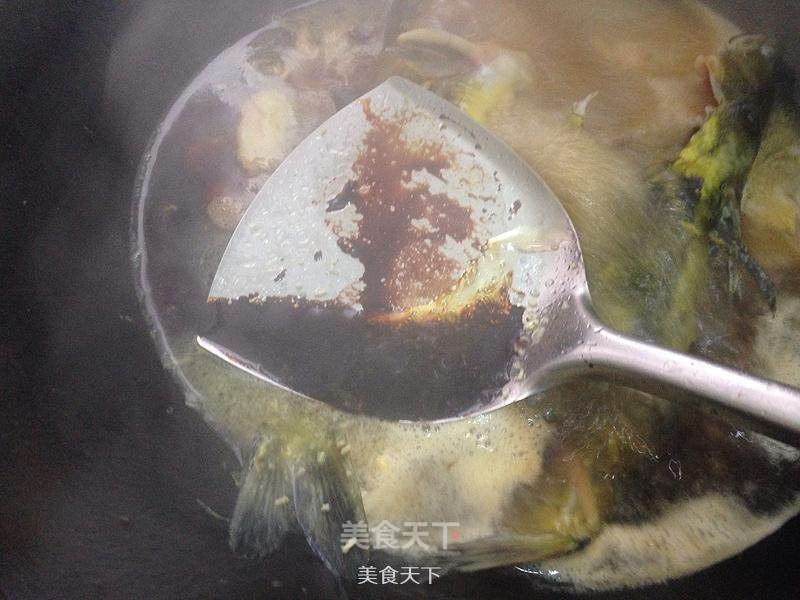 3.放入魚,把魚身兩面稍微煎下,加如黃酒少許。