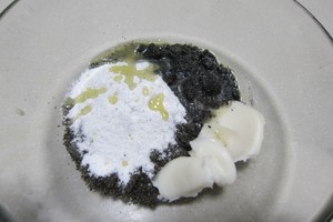 (1)熟黑芝麻放料理機(jī),用打粉杯打成均勻的粉狀。
