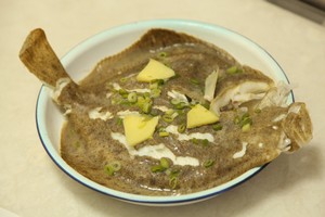 看電影《游龍戲鳳》的時(shí)候,舒淇稱贊多寶魚人緣好好,好多friends,想沾沾它的人氣,于是海鮮市場(chǎng)買來多寶魚,自己動(dòng)手~~蒸好的魚肉質(zhì)鮮美,味道不錯(cuò)噢~用料??多寶魚 料酒 姜 蔥 鹽 紅辣椒 生抽 白糖 清蒸多寶魚的做法步驟圖:1. 把多寶魚去除內(nèi)臟,洗干凈,瀝干水分,盛盤。2. 在多寶魚的兩面撒上鹽,倒上點(diǎn)料酒,腌制15分鐘。(腌制完畢把料酒倒掉)3. 姜、蔥切絲,紅辣椒切