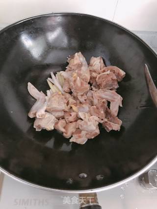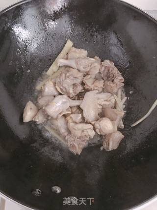 2. 熱鍋加油倒入雞塊生姜翻炒。