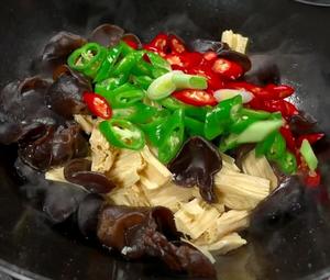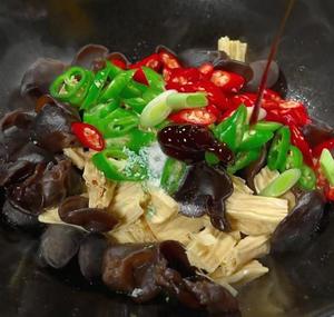 4. 把蔥蒜小米椒下鍋,加點(diǎn)老抽和料酒