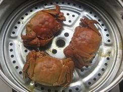 大閘蟹剛開始入鍋蒸的時候要將蟹的肚子朝上,這樣蟹黃正好被蟹蓋接住不會溢出。
