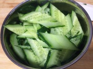 8. 加入黃瓜,放入適量鹽和少許糖,翻炒均勻,最后再加入剛才炒好的雞蛋,半分鐘就可以出鍋了。