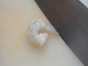 1. 蝦仁處理干凈,用刀刮成蝦泥后用刀背剁散