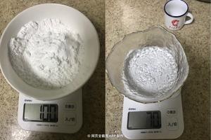 2. 100g淀粉用70g水泡開靜置到淀粉沉淀,倒掉表面的清水備用。