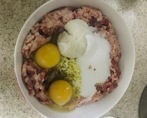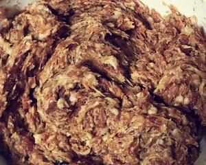 5. 戴手套抓取一部分肉餡,不要太多,用虎口擠出一個(gè)肉丸(不圓的話可以反復(fù)幾次,總會(huì)擠圓的),