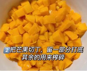 2. 把芒果切丁留一部分打底,其余的用來榨碎