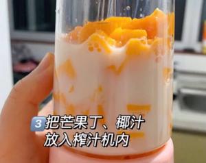 3. 把芒果丁丶椰汁放入榨汁機內(nèi)