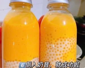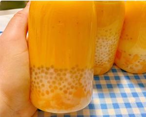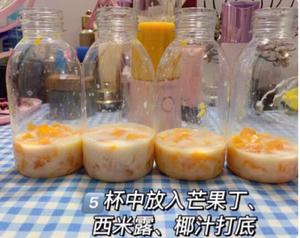 5. 杯中放入芒果丁丶西米露丶椰汁打底