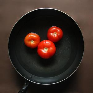 1. 西紅柿洗凈,表面劃十字,放入水鍋中煮沸撕皮。取出待用。