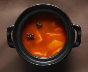 5. 將剩余的西紅柿放入砂鍋中,放八角和姜片。加少許料酒。
