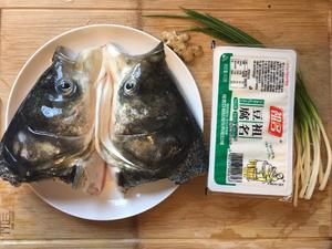 1. 準(zhǔn)備材料。魚(yú)頭一定要現(xiàn)殺的。如果買(mǎi)不到盒豆腐就嫩豆腐也行