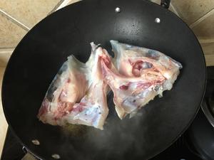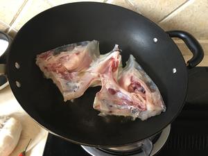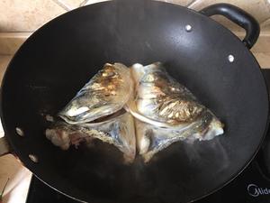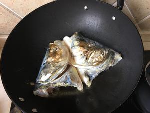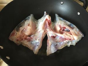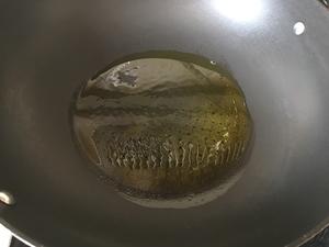 3. 找一口舊不粘鍋放上菜籽油,別用新的不粘鍋,因?yàn)轸~(yú)頭里面的刺很容易就把涂層刮壞了