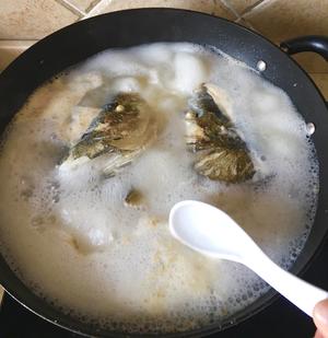 17. 看,魚(yú)湯是不是很白?如果不夠白繼續(xù)大火煮,夠白了就轉(zhuǎn)小火再燉10分鐘,然后進(jìn)入下一步